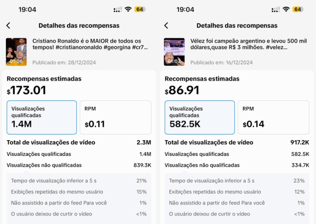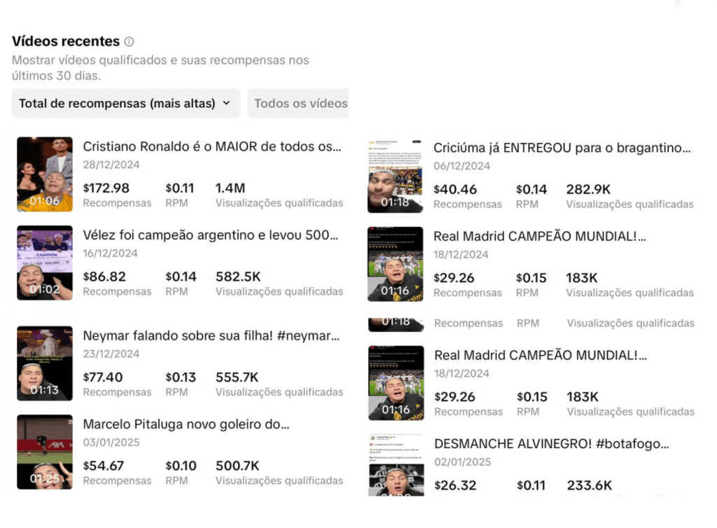 Mais de R$4.115 feito em poucos vídeos, confira abaixo: